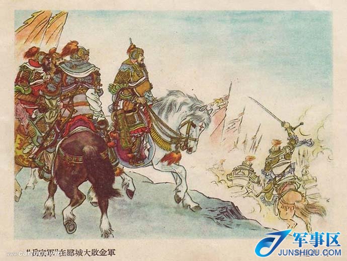 岳飞得到这个命令,立刻一面派部将王贵、牛皋、杨再兴等分路出兵,一面派人到河北 跟义军首领梁兴联络,要他率领义军在河东、河北包抄敌人后方。岳飞坐镇在郾城指挥。